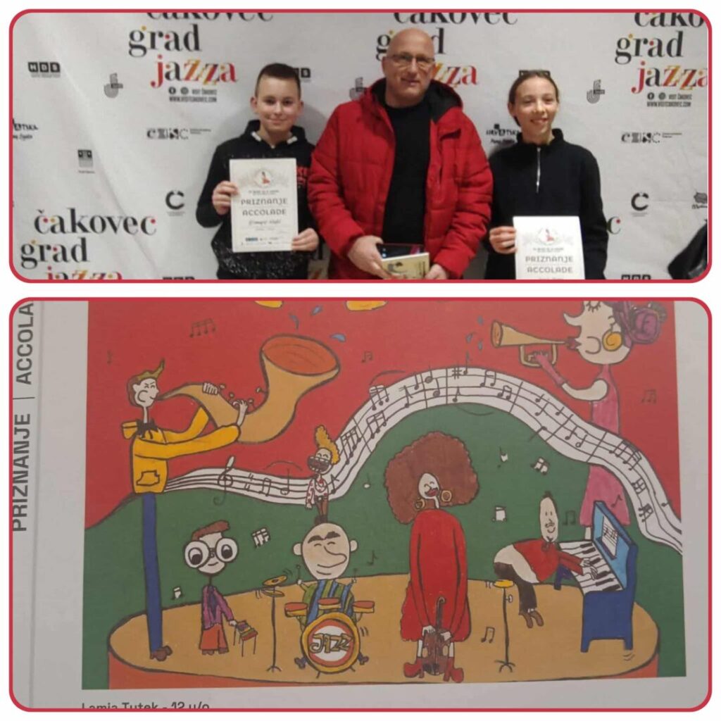 Na ovogodišnjem natječaju u karikaturi na temu jazz-a sudjelovalo je pet učenica naših škola: PŠ Nikole Tesle Moravice – učenice 6. razreda Daria Tadić i Kristina Murat te PŠ I.G.Kovačića Severin na Kupi, također učenice 6. razreda Petra Lisac, Lamia Tutek i Lana Luketić. U kategoriji mlađi od 16 god. sudjelovalo je ukupno 95 autora s 122 karikature iz 7 država. Naša učenica Lamia Tutek ušla je među prvih 10 koji su pohvaljeni posebnim priznanjem te su njihovi radovi, uz nagrađena prva tri mjesta, također izložena na izložbi i otisnuti u ovogodišnjem katalogu izložbe. Prve tri nagrade osvojili su mladi autori iz Turske, Hrvatske i Srbije. Zanimljivo je kako od 13-ero mladih autora iz Hrvatske 12-ero je bilo iz Gorskog kotara i jedna djevojčica iz Čakovca (2. mjesto). Pohvaljeni učenici Lamia Tutek i Domagoj Ružić (Ravna Gora) posjetili su sa svojim obiteljima otvorenje ove izložbe u Čakovcu (20.11.) kada se ujedno odvijao i Festival jazz-a. Nakon svečanog otvorenja i uručenja nagrada i pohvala, mogla se razgledati izložba samih karikatura, a poznati karikaturisti Krešimir Kveštek i Ivan Sabolić crtali su portretne karikature posjetitelja pa smo tako i mi dobili lijepu uspomenu na ovo druženje. Čestitke još jednom svim našim učenicima na sudjelovanju i postignutom uspjehu!