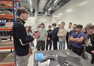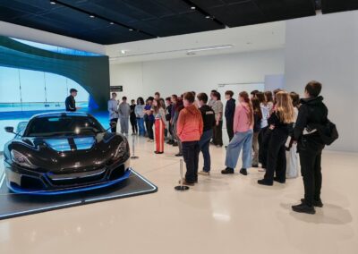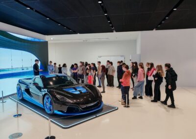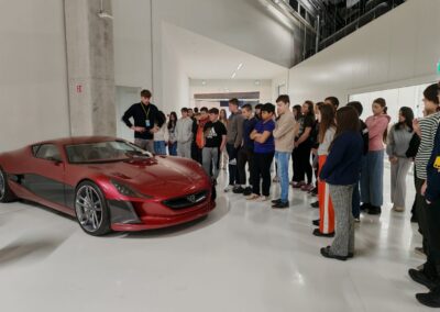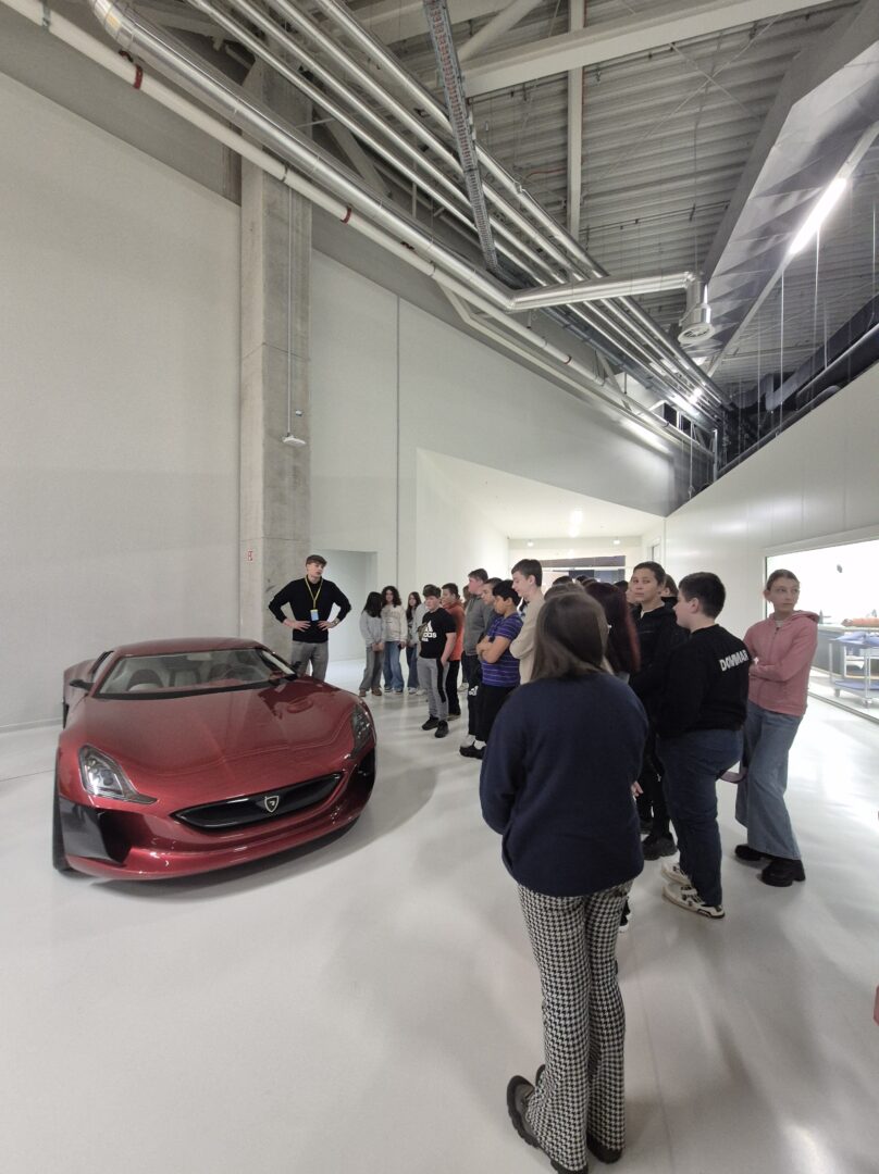 Učenici su uz stručno vodstvo imali priliku upoznati sve faze razvoja i proizvodnje električnih hiperautomobila. Tvrtka Rimac razvija i proizvodi vrhunske električne automobile, ali i napredne baterijske sustave, pogonske sklopove i elektroničke komponente za brojne svjetske proizvođače automobila. Posebno ih je oduševio model Rimac Nevera – jedan od najbržih električnih automobila na svijetu, s čak 1914 konjskih snaga i ubrzanjem od 0 do 100 km/h za manje od 2 sekunde . U kampusu se, osim automobila, razvijaju i proizvode baterijski sustavi i električni pogoni za globalnu autoindustriju.