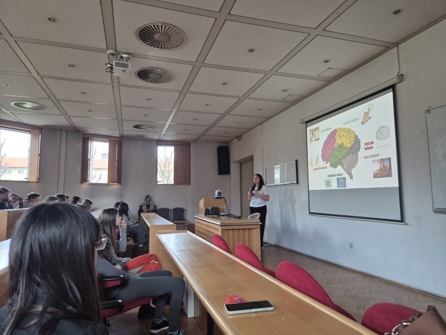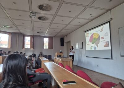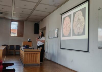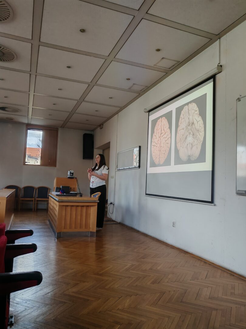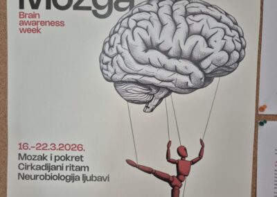 Drugi dio terenske nastave bio je posvećen znanosti o mozgu. Učenici su sudjelovali na zanimljivom predavanju o funkcioniranju mozga, važnosti kretanja, učenja i zdravih navika za njegov razvoj. Poseban doživljaj bio je posjet laboratoriju, gdje su iz prve ruke vidjeli kako znanstvenici istražuju mozak i živčani sustav.