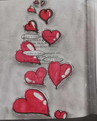Učenici 8. razreda na satu Hrvatskoga jezika provodili kreativnu aktivnost uz pjesme Dobriše Cesarića. Učenici su radili ovu aktivnost uz eTwinning projekt “Lektira bez papira 5”. Nakon zajedničkog čitanja i razgovora o pjesmama, izradili su vlastite primjere blackout poezije. Učenici su dobili ispisane pjesnikove tekstove te su, birajući ključne riječi i fraze, stvarali sasvim nova pjesnička značenja i vizualne kompozicije. Svoju su gotovu blackout poeziju na kraju sata razmijenili i predstavili prijateljima u razredu. Aktivnost je kod učenika potaknula stvaralaštvo, maštovitost i dublje razumijevanje Cesarićevih stihova.