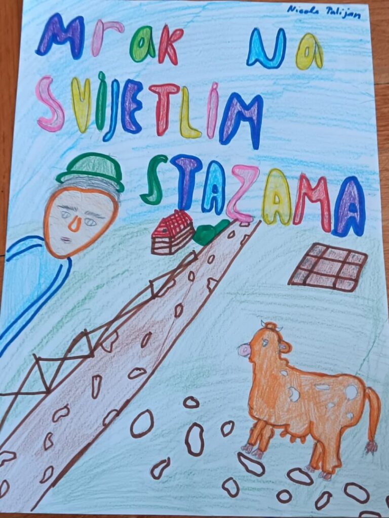 U okviru eTwinning projekta “Lektiru u ruke, čitajmo bez muke 3” učenici su kreativno pristupili obradi pripovijetke Ivan Goran Kovačić Mrak na svijetlim stazama oslikavajući njezinu naslovnicu prema vlastitom doživljaju teksta. Kroz likovni rad prikazali su motive i ugođaj djela, a potom su svoje radove predstavili i obrazložili, razvijajući pritom kreativnost i interpretacijske vještine.